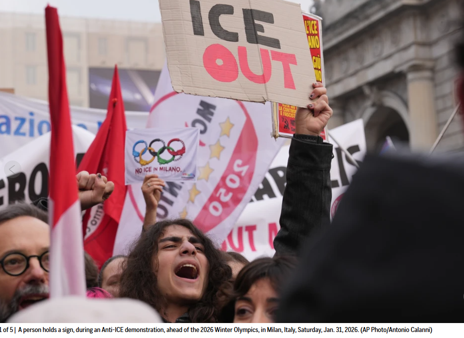 【美洲华联社1月31日意大利米兰讯】据美联社报道,当地时间周六,数百名示威者聚集在米兰,抗议美国移民及海关执法局(ICE)在即将到来的冬奥会期间部署执法人员。尽管执法人员将被安排在控制室而非在街头执勤,他们仍然坚持抗议。