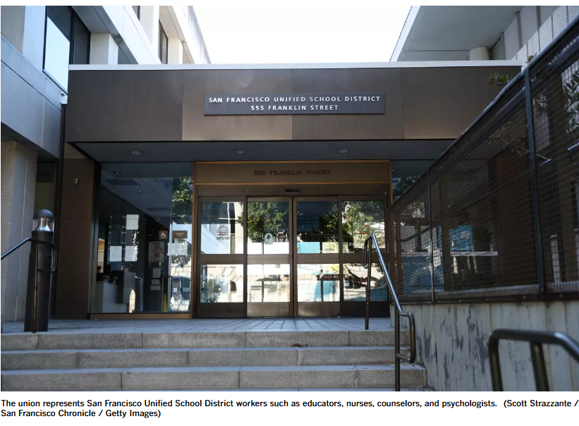 代表旧金山联合学区(San Francisco Unified School District,简称USDS)员工(包括教师、护士、辅导员和心理学家)的工会以97.6%的赞成票通过了一项决议,为潜在的罢工铺平了道路。
