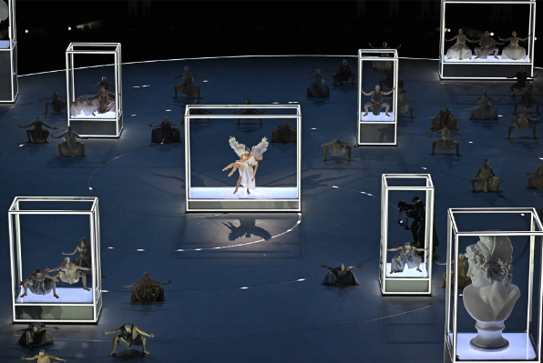 尽管圣西罗球场下层看台仍有大片空位(或许是因为高达2400美元的门票价格),但开幕式从一开始就节奏明快、创意十足、精彩纷呈,将米兰乃至意大利的文化精髓——从时尚、电影、文学到音乐完美融合。3位头戴夸张卡通头套的演员分别扮演了意大利作曲家贾科莫·普契尼、朱塞佩·威尔第和焦阿基诺·罗西尼,贯穿了上半场的大部分时间。玛丽亚·凯莉深情演绎了《Volare》。男高音歌唱家安德烈·波切利以振奋人心、气势磅礴的普契尼名曲《今夜无人入眠》震撼全场,观众们纷纷起立鼓掌。