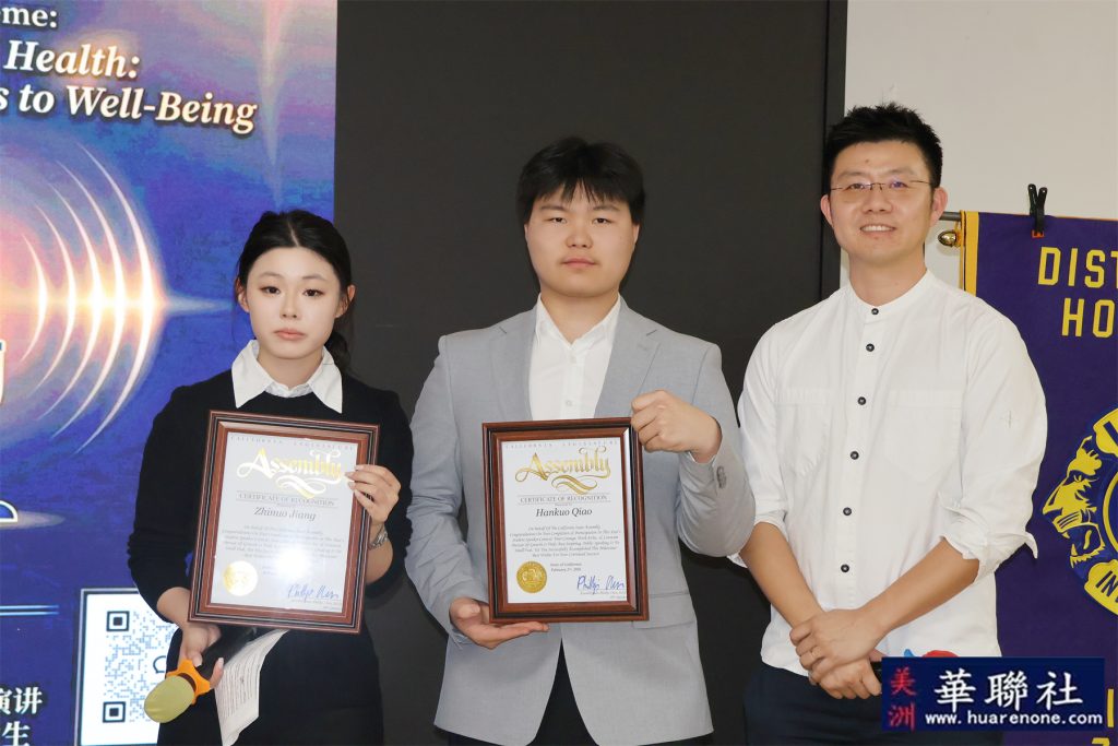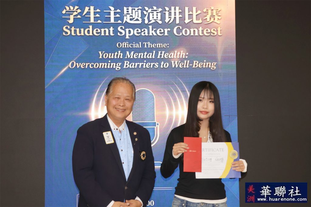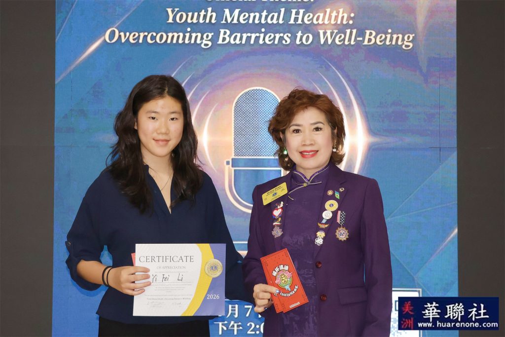 【美洲华联社洛杉矶报道】2月7日下午,洛杉矶菁英狮子会成功举办第89届加州狮子会学生主题演讲比赛,本届比赛以“青少年心理健康:克服通往幸福的障碍”(Youth Mental Health: Overcoming Barriers to Well-Being)为主题,今年是“第五次”举办演讲比赛,鼓励青少年关注心理健康议题,勇敢表达自我、传递正能量。加州众议员Phillip Chen(陈立德)委派代表为学生们颁发了贺状。
