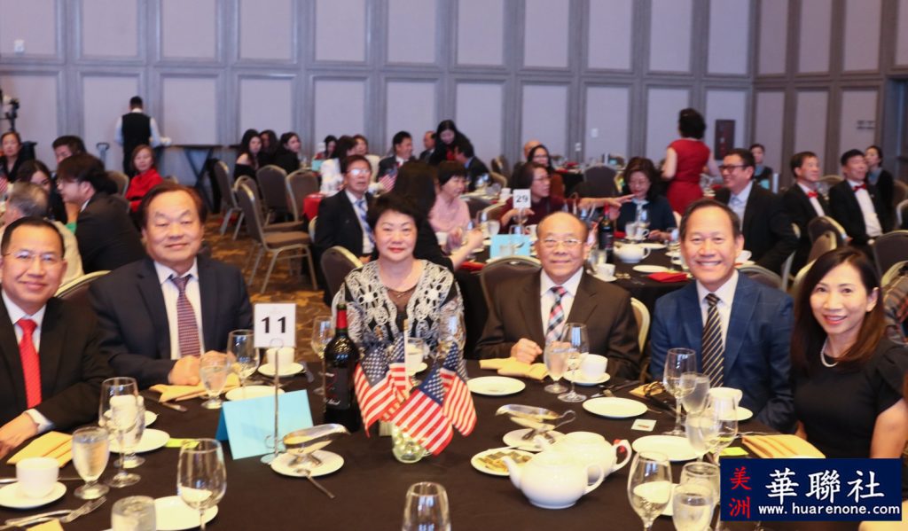 ,北美高校聯合會會長陳峥,全美浙江總商會執行會長顧得耀,加州亞裔律師協會創會會長華強,長林地產集團創辦人Wendy & Tony Wong,Oliver Ma for Lt. Governor競選副主席楊雅琪,美國南加州華人聯合總會監事長董珂,美華基金會會長于澤偉,南加州醫藥大學(SCU)院長Jenny Yu,美華總執行會長盛東林,美華總執行會長林方,美華總常務執行會長毛幼榮,美華總教育委員會負責人浦里红,美華總女性委員會薛蕾,陕西同鄉會會長劉永强,美國華人社團聯合會榮誉主席林德憲,美國東北總商會主席路霞,美國飛虎隊傳播協會主席虞清,美國南加州廣府人聯合會會長梅寧,海外越劇聯盟主席鄔索菲,美華聯常務秘書長劉素寧,中華美食文化協會會長張芙蓉,美華聯副秘書長趙妙玲,南加州清華大學校友會會長吳曉宇,南加州清華大學校友會前會長黄唯,美西華人學會會長李世平,美西華人學會理事長劉榮文,美西華人學會理事車慶餘,交通大學南加州校友會前會長邵瑩,交通大學南加州校友會前會長蔣建良,南加州華人總商會會長會長謝少華,雲南同鄉會會長許瑞,物流協會會長孫浩誠等四百多位嘉賓歡聚一堂,場面熱鬧非凡,大家見證新一屆理事會宣誓上任。