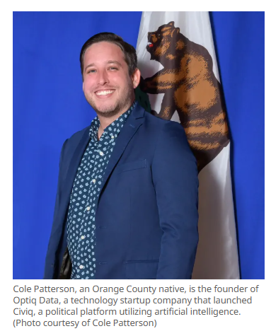 科尔·帕特森是橙县本地人,他是Optiq Data的创始人,这是一家科技初创公司,推出了Civiq,一个利用人工智能的政治平台。(照片由科尔·帕特森提供)