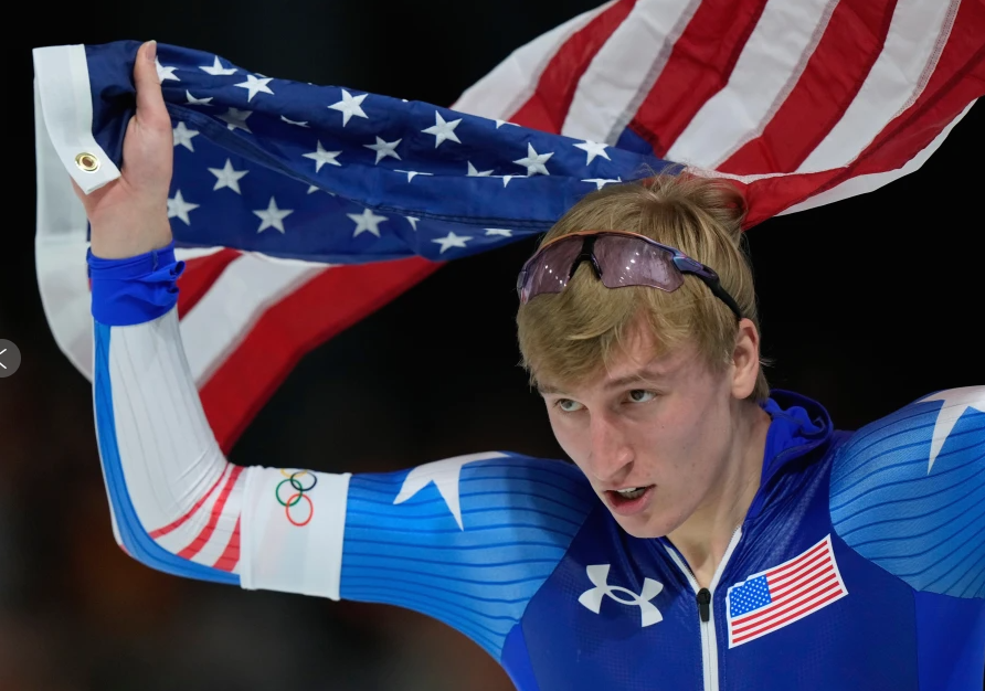 21岁的威斯康星州小伙乔丹·斯托尔兹(Jordan Stolz)在周三的男子1000米速滑比赛中展现了统治级的实力,以1分06秒28的成绩创造了新的奥运会纪录,并赢得了他的首块奥运金牌。 这个项目的银牌得主是荷兰的Jenning de Boo(1:06.78),第2次参加冬奥会的中国选手宁忠岩(1:07.34)赢得这个项目的铜牌。