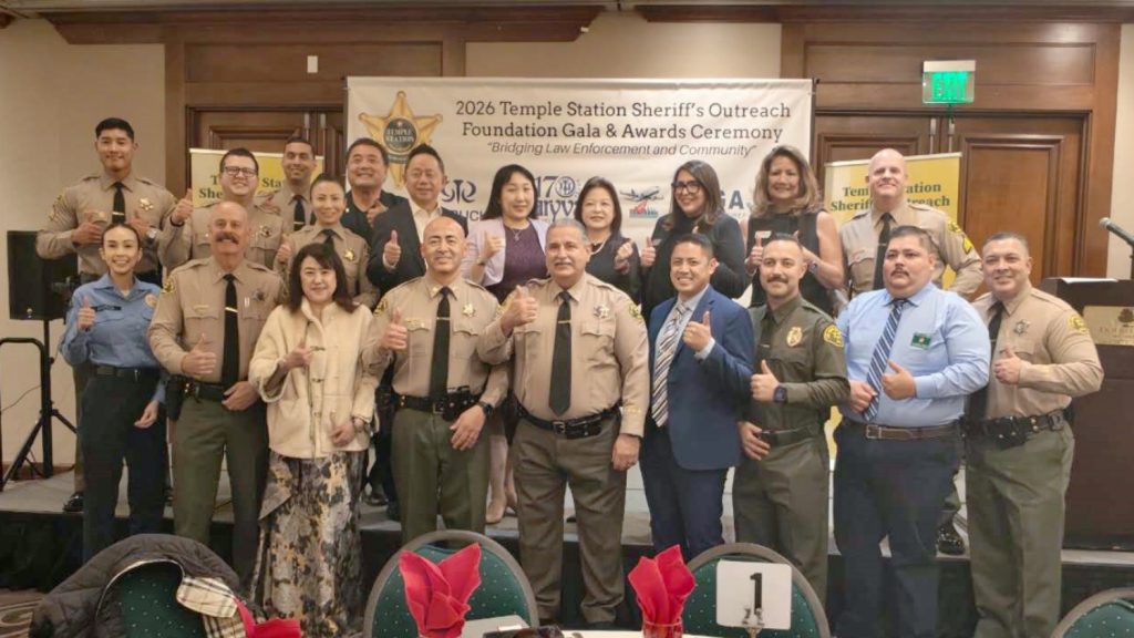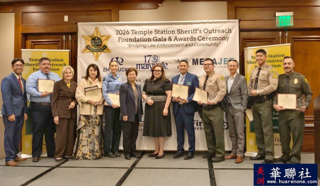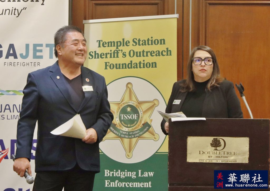 【美洲华联社2月13日洛杉矶报道】洛县警局天普分局外展基金会(TSSOF)于2月11日晚举办第二届年度晚宴暨颁奖晚会,洛县警局天普分局对2025年度优秀警员进行表彰。洛县警局东区指挥官Elier Morejon,洛县政委员巴格的区域代表Vickey Paul和吴忠国,南艾尔蒙地市、柔似密市、天普市的民选官员和社区各界人士100多人与会。