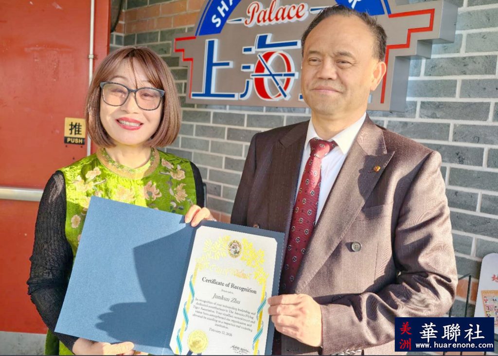 出席当天活动的还有美华联常务秘书长曹大福、北美高校联盟会长陈峥、美国医学健康协会会长王森林、 美国国色天香文化艺术联合会会张莉安、 美国飞虎队传播协会理事杜杰和Hana、美国飞虎队传播协会常务秘书长Sherry 等。