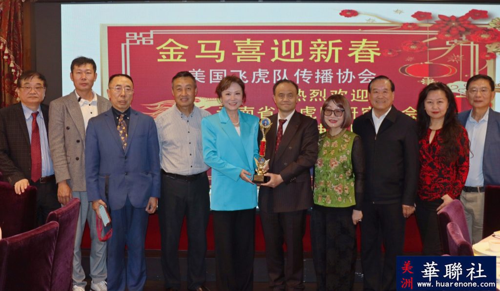 【美洲华联社2月14日洛杉矶报道】美国飞虎队传播协会于2月12日在位于哈岗的上海滩餐馆举行欢迎会,热情欢迎中国云南省飞虎队研究会会长朱俊坤一行访问洛杉矶。美国飞虎队传播协会主席虞清与朱俊坤会长就双方在中美两地弘扬和传承飞虎精神、促进中美民间友好的合作项目落地深入交流。美中和平友好促进会会长鹿强、核桃市前市长苏王秀兰、美华联共同主席团主席许承武和洛杉矶著名律师申春平等南加州侨界代表出席了当天的活动。