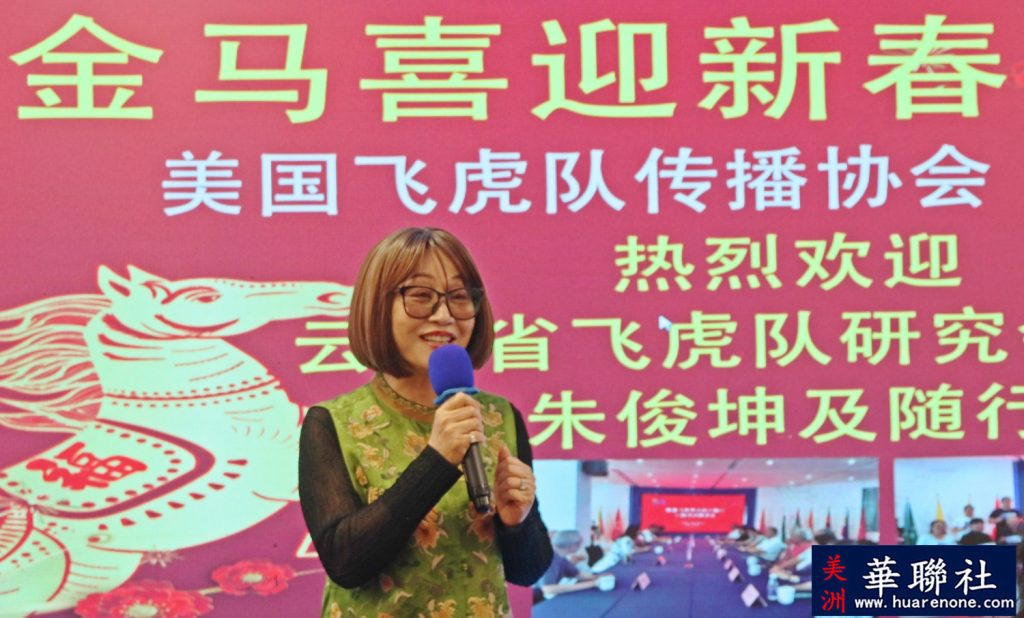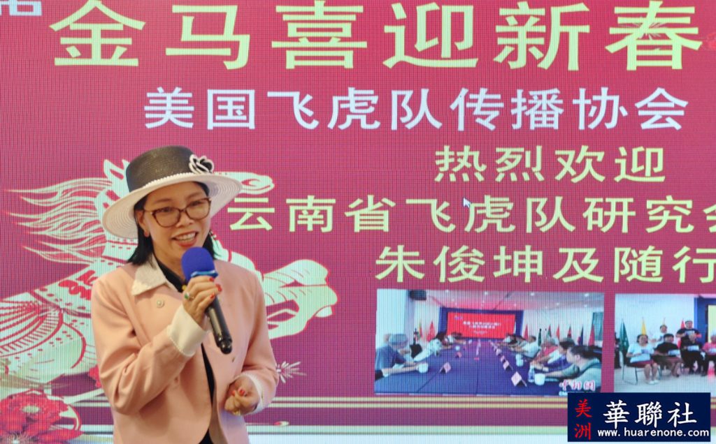 虞清在致辞中表示,今年是飞虎队正式成立85周年,也是美国飞虎队传播协会成立10周年。在这样一个承前启后的重要年份,我们与来自云南的飞虎队研究者相聚洛杉矶,共同回望历史、展望未来,格外具有深远意义。云南省飞虎队研究会在中国飞虎队协会中享有泰斗地位,此次我们接待来自云南飞虎代表团,感到无比的荣耀。