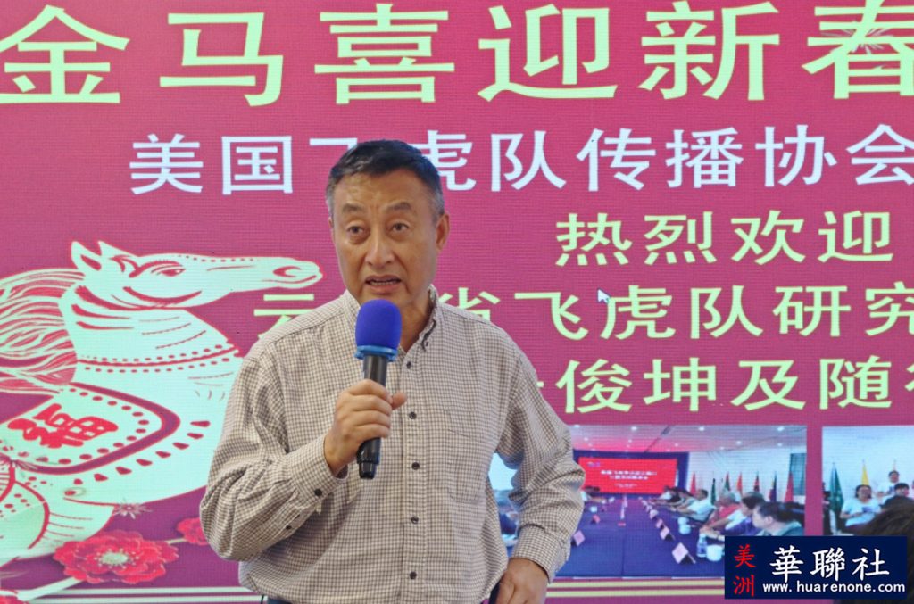 虞清说,10年来,我们美国飞虎队传播协会始终秉持”讲好飞虎故事、弘扬飞虎精神”的初心,在社区各界的支持下,我们己经成为美国主流的飞虎队协会。2024年,我们访问云南,云南省飞虎队研究会会长朱俊坤及同仁们热情接待我们,我们双方正式签订战略合作协议,开启了跨越太平洋、共同守护飞虎队历史记忆的新篇章。当年由云南省飞虎队研究会历史专家带队,我们在云南探访驼峰航线和中缅印战场及腾冲抗战纪念馆,挖掘了许多飞虎队不为人知的可歌可泣的故事。今天,我们的重逢,既是双方友谊的延续,更是飞虎队历史研究合作的深化。