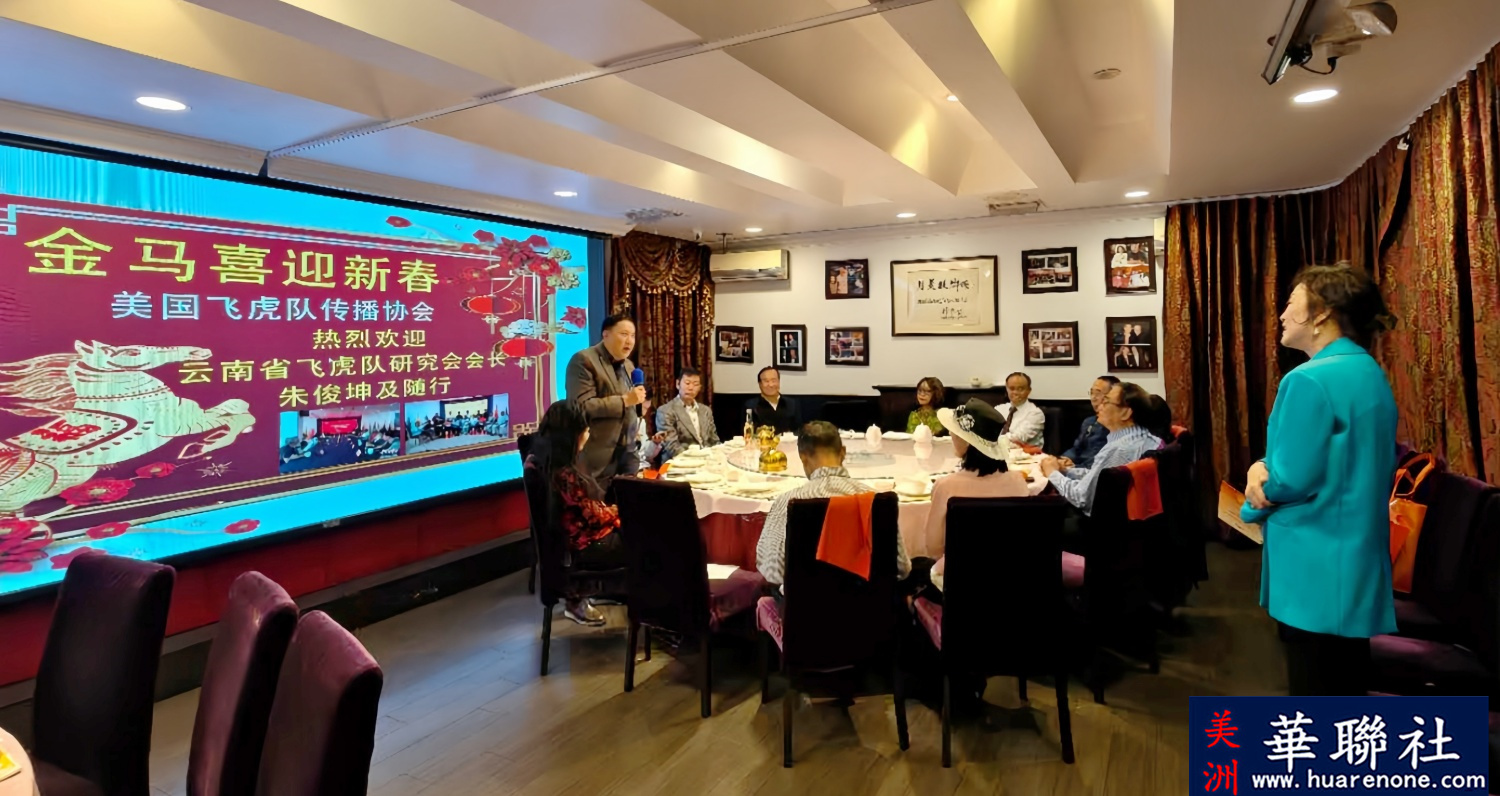 【美洲华联社2月14日洛杉矶报道】美国飞虎队传播协会于2月12日在位于哈岗的上海滩餐馆举行欢迎会,热情欢迎中国云南省飞虎队研究会会长朱俊坤一行访问洛杉矶。美国飞虎队传播协会主席虞清与朱俊坤会长就双方在中美两地弘扬和传承飞虎精神、促进中美民间友好的合作项目落地深入交流。美中和平友好促进会会长鹿强、核桃市前市长苏王秀兰、美华联共同主席团主席许承武和洛杉矶著名律师申春平等南加州侨界代表出席了当天的活动。