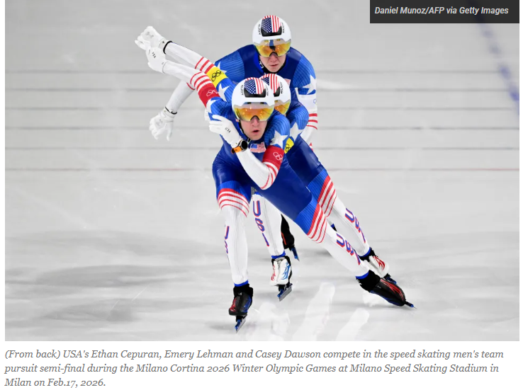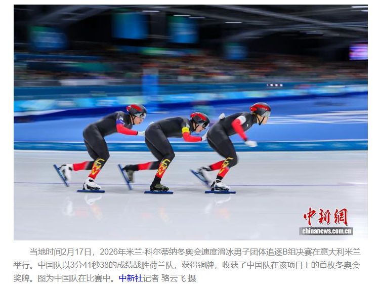 在男子速度滑冰团体追逐赛中,东道主意大利队后半程发力,以3分39秒20的成绩夺冠,领先夺金热门美国队4.51秒。美国队获得银牌,中国队则获得该项目的铜牌。