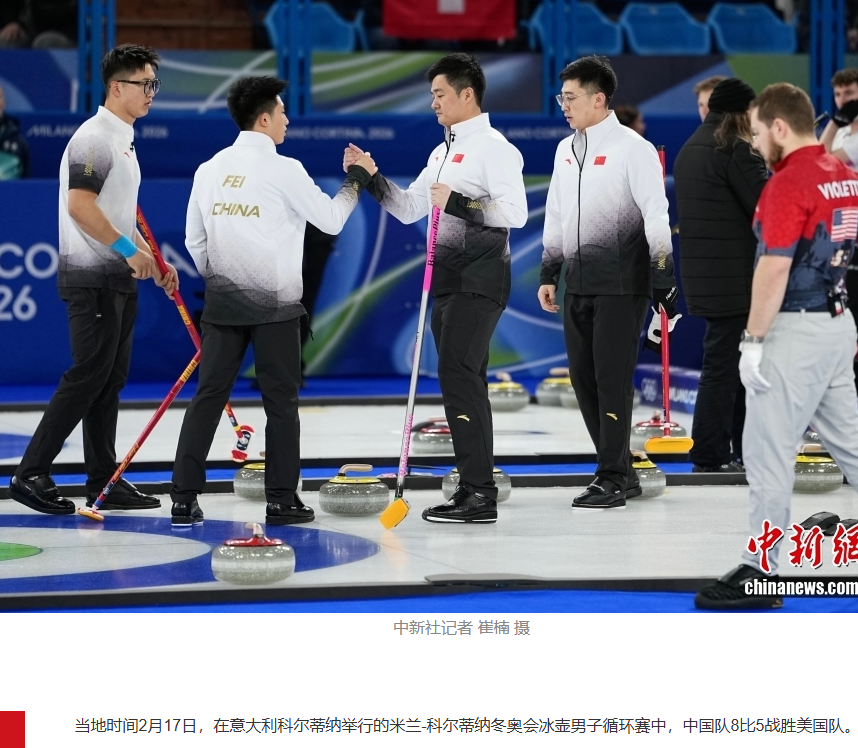在当天冰壶男子循环赛中,中国队8比5战胜美国队。