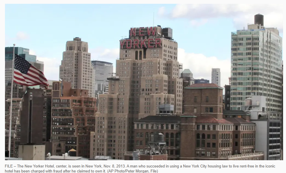 【美洲华联社2月18日纽约市讯】一名试图侵占纽约客酒店所有权的纽约市男子已承认犯有欺诈罪,结束了一场旷日持久的法律纠纷。这场纠纷涉及一项鲜为人知的租户法,该法允许这名男子在曼哈顿这家历史悠久的酒店免费居住多年。