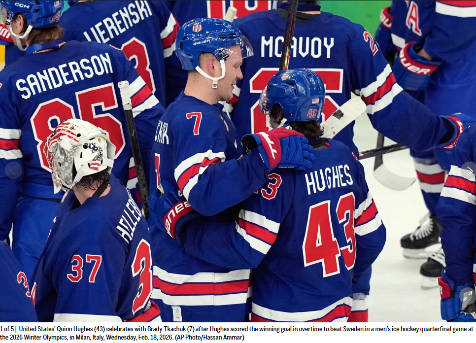 美国队其他赛事的成绩包括美国男队加时赛击败瑞典男队,晋级冬奥会冰球半决赛。