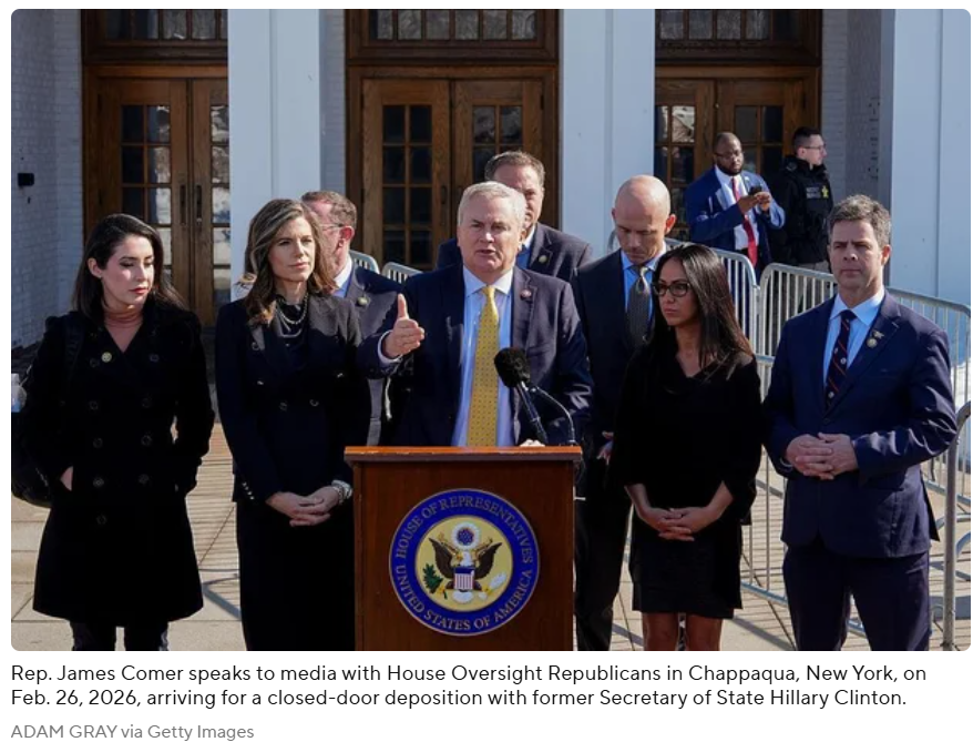 克林顿夫妇均未被指控有任何不当行为,两人都呼吁全面公开爱泼斯坦案的档案。上周,希拉里·克林顿在接受BBC采访时指责科默坚持不公开证人身份。
