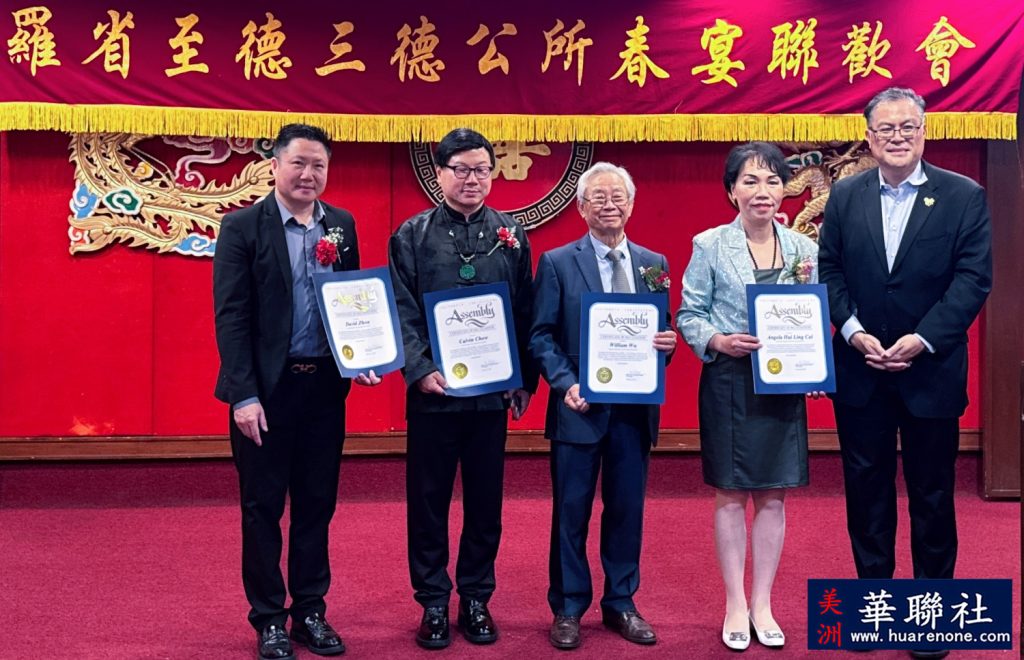 在隨後於華埠金龍酒家舉辦的春宴和獎學金頒發活動,周本立、方樹強等對羅省至德三德公所在社區服務、文化傳承、尊老愛幼等方面的工作給予了高度評價,充分肯定獎學金的頒發對華裔子弟成長的重要性。他們期待在蔡惠玲的領導下,羅省至德三德公所的會務在新的一年更上一層樓。