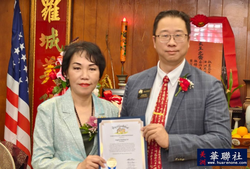 出席當天活動的還有中華會館監事長張麗卿,中華會館副主席朱伯田和副監事長梁國輝,美中物流總商會、美中廣東商會會長張鐵流和秘書長黃有莉、經文處黄楷茗副主任等。