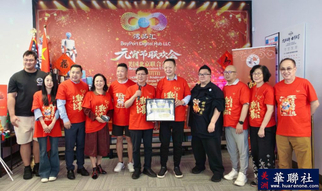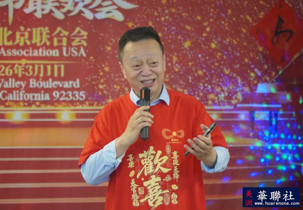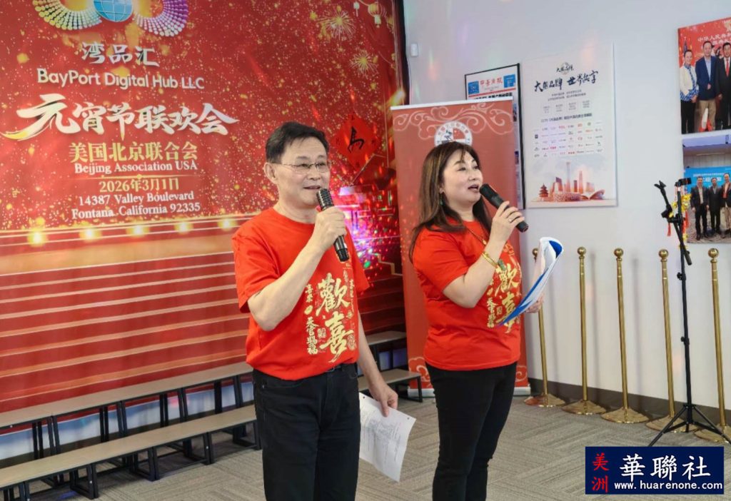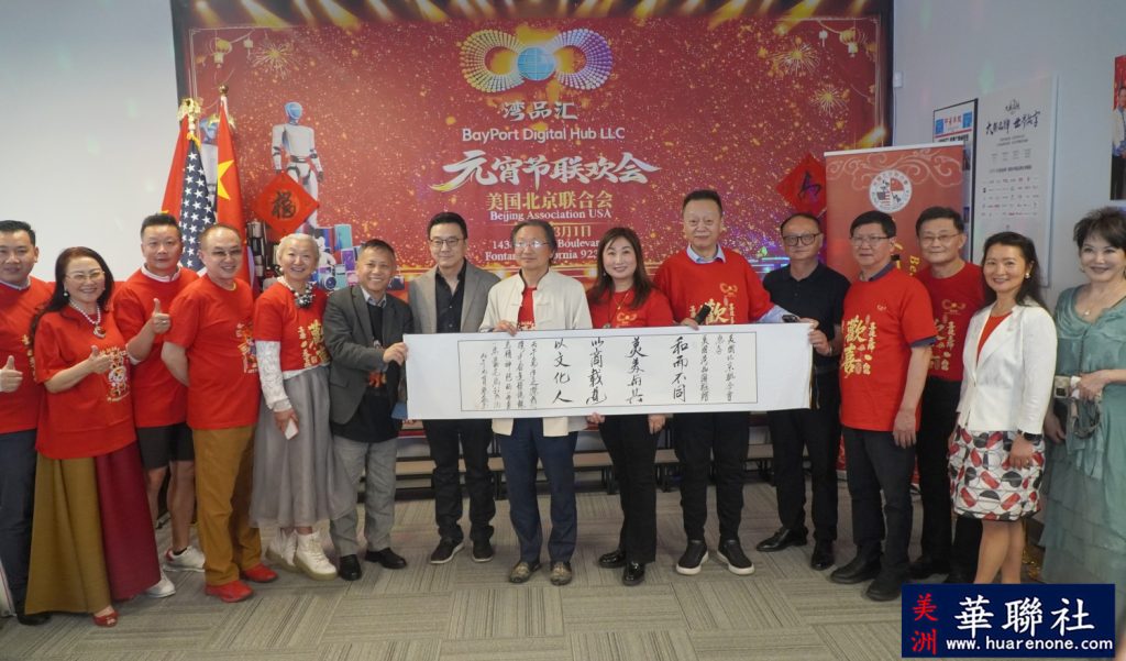 【美洲华联社3月2日洛杉矶报道】3月1日,美国北京联合会组织企业家会员走进位于洛杉矶东区的湾品汇,隆重举行马年新春元宵联欢会。活动由美国北京联合会常务理事长李红律师与荣誉会长陈劲松律师共同主持。
