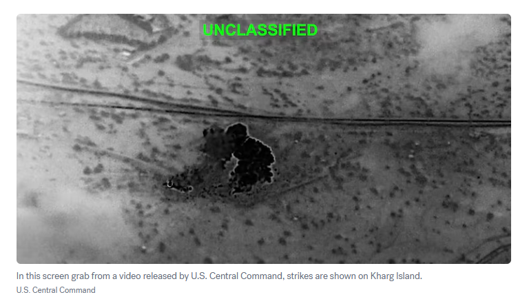 特朗普发布了一段美国空袭哈尔格岛的视频,视频显示炮弹击中了岛上的机场和其他目标。