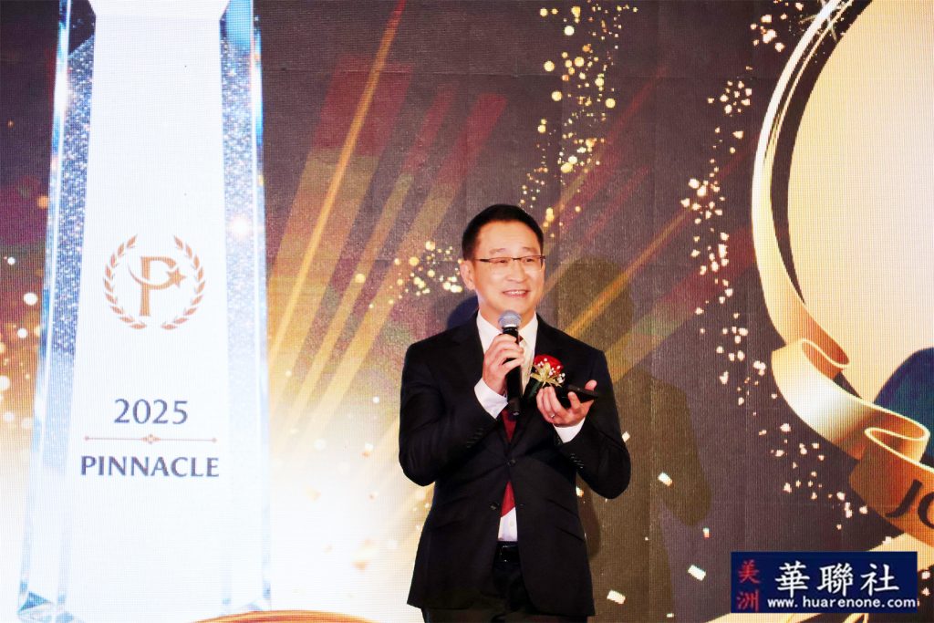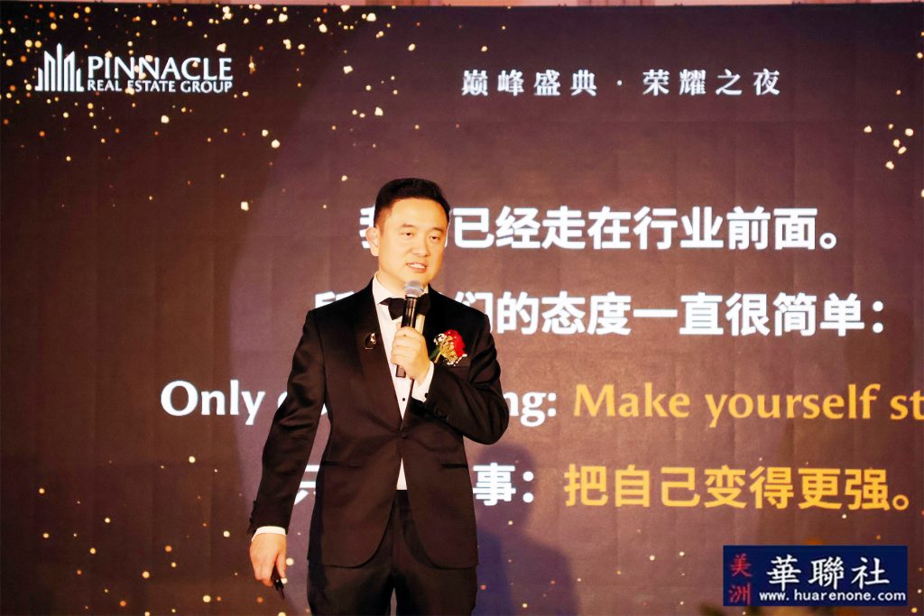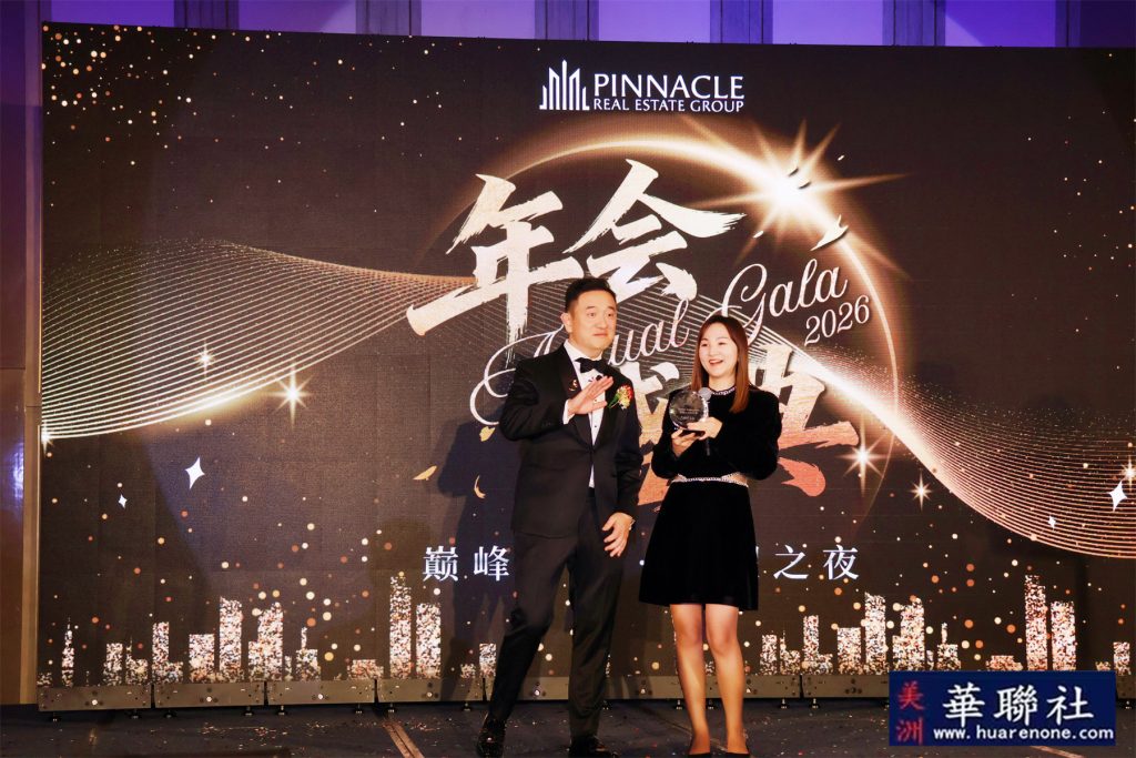 【美洲华联社洛杉矶报道】南加州最大的华人地产公司Pinnacle领先地产集团于3月14日晚在圣盖博喜来登酒店隆重举办2026年年会,南加州地方政要、侨团代表、业内人士近500人到场祝贺。总裁龚朋良(Calvin Gong)在主旨演讲中再次强调公司以经纪人为中心的核心理念,希望与每位经纪人携手开启新时代。在当晚的年会上,还进行了年度颁奖表彰。