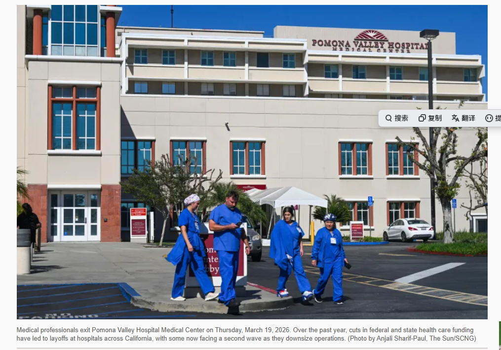 【美洲华联社3月23日讯】过去一年,由于联邦和州政府削减了数十亿美元的医疗保健资金,医院遭受了数千人裁员的打击,一些医院甚至陷入了严重的财务困境。