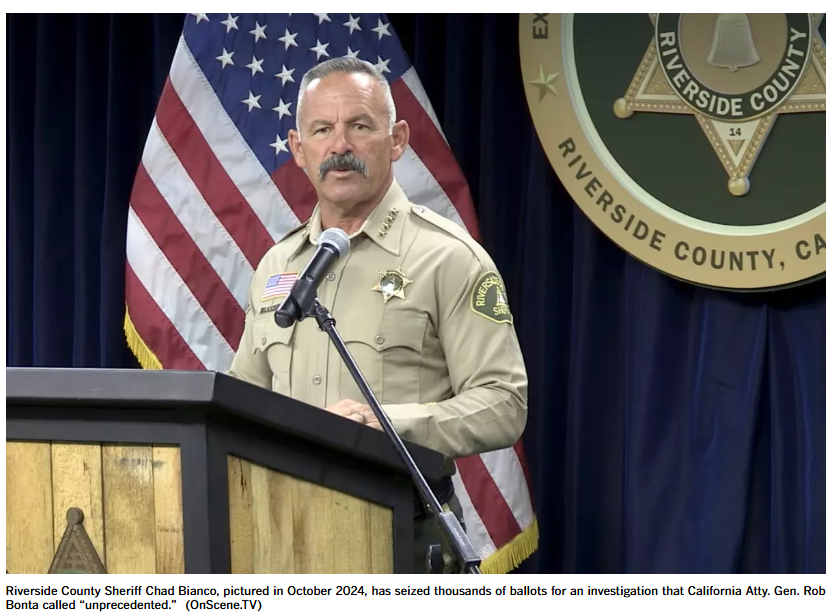 【美洲华联社3月23日河滨县讯】共和党加州州长候选人、河滨县警局局长查德·比安科从县选举官员手中扣押了去年11月加州特别选举的50多万张选票,称他正在调查计票差异。