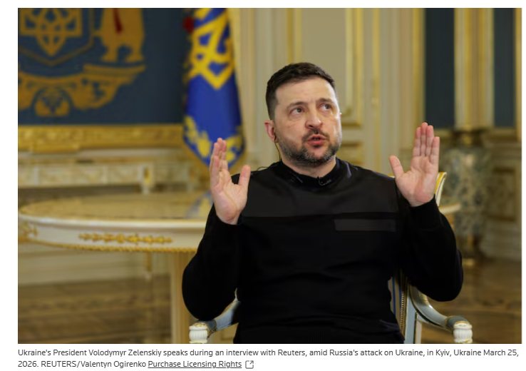 泽连斯基表示,由于美国正专注于与伊朗的冲突,·特朗普总统正向乌克兰施压,试图尽快结束这场由俄罗斯2022年入侵引发的、持续4年的战争。他告诉路透社,“中东局势无疑对特朗普总统及其下一步行动产生了影响。不幸的是,我认为特朗普总统仍然选择向乌克兰方面施加更大压力的策略。”
