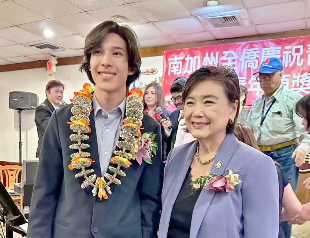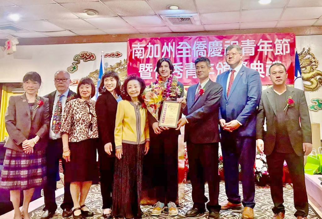 【美洲華聯社3月25日洛杉磯報道】在日前舉行的南加州全僑各界慶祝青年節暨優秀青年頒獎典禮上,17位優秀青年獲得表彰,國會議員趙美心到場頒發證書。在獲獎的優秀青年中,一位有著與華人面孔不太一樣、高大帥氣的青年格外引人注目,他就是南加州資深華裔民選官員之一、阿罕布拉學區前教委主席黃趙企晨博士的外孫黃國璋。談及外孫獲得表彰,黃趙企晨非常高興,她說這個孩子在很小的時候就有為社區服務、奉獻的意識,長大以後一直在這些方面不斷努力。