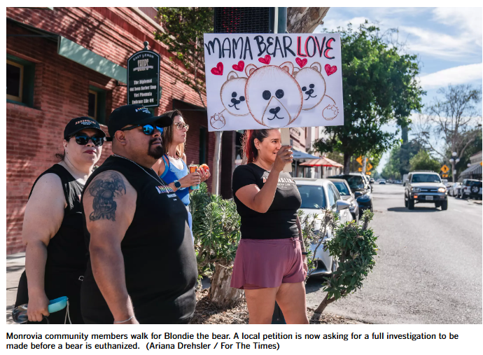 【美洲华联社3月26日蒙洛维亚市讯】据洛杉矶时报报道,一只蒙罗维亚的母熊在2次袭击居民后被州野生动物官员实施了安乐死。她的两只孤儿幼崽将在圈养环境中长大,目标是最终放归野外。当地领导人曾呼吁将这家熊迁走,并对她的死讯表示痛心疾首,称其“令人沮丧”。