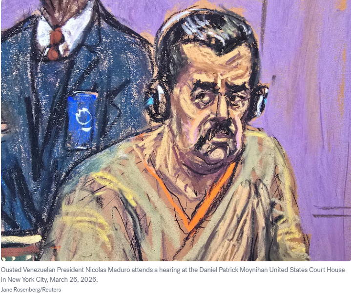【美洲华联社3月26日综合报道】被罢黜的委内瑞拉总统马杜罗周四重返美国法庭,面临包括毒品恐怖主义在内的刑事指控。路透社的报道认为,毒品恐怖主义法很少在审判中得到检验,且成功案例有限。