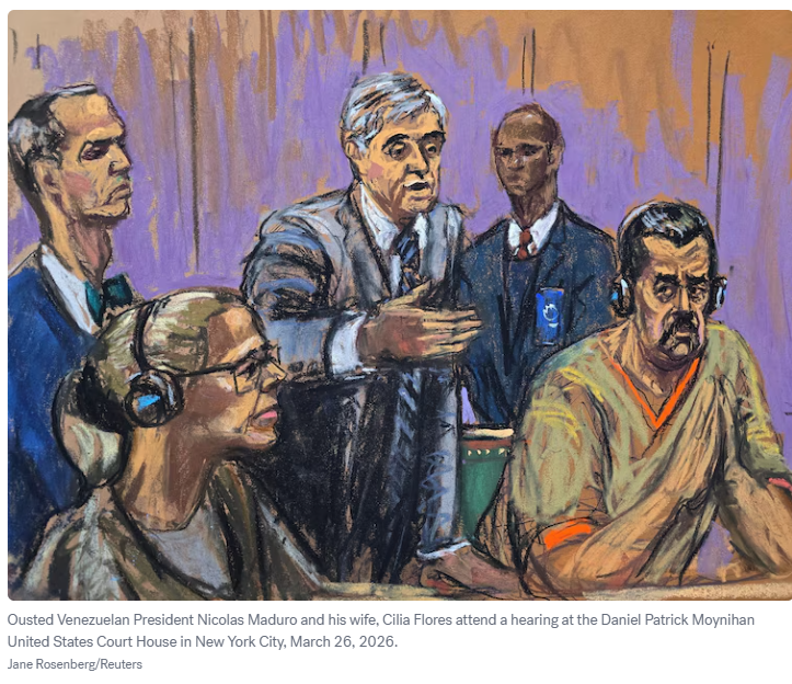 【美洲华联社3月26日综合报道】被罢黜的委内瑞拉总统马杜罗周四重返美国法庭,面临包括毒品恐怖主义在内的刑事指控。路透社的报道认为,毒品恐怖主义法很少在审判中得到检验,且成功案例有限。