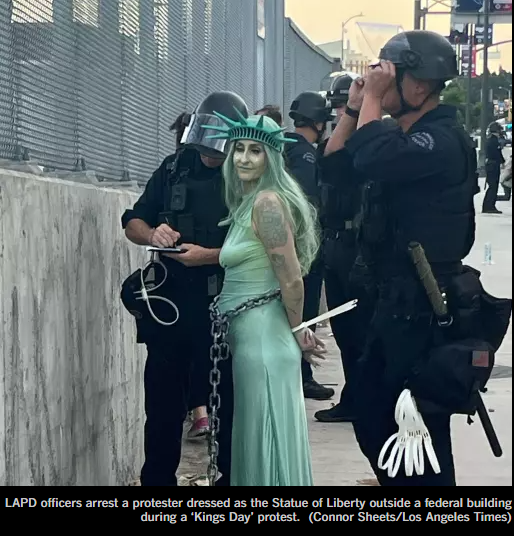 在洛杉矶市中心此前的两次“”No King”抗议活动中,驱散令都是在游行预定结束时间之后很久才发布的,导致多人被捕。