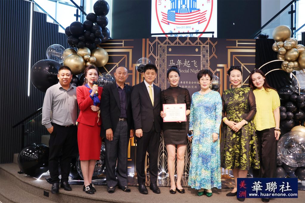 美国华人社团联合会祝贺王明明荣任奉商美国总会青委会主席,特别颁发贺状,执行长林连连题写贺词: