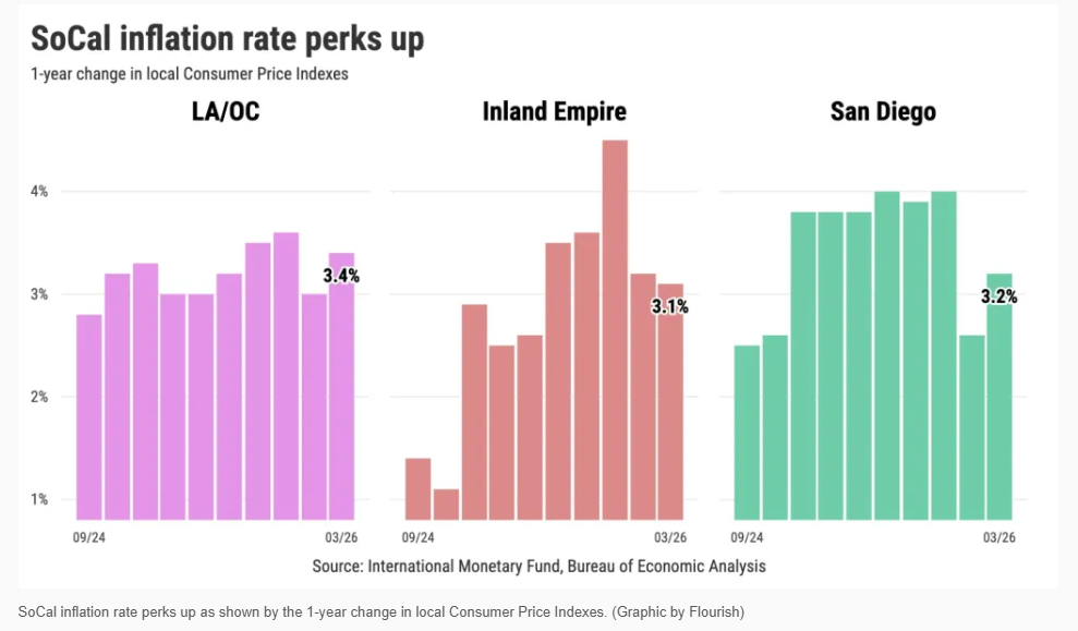 包括河滨县和圣贝纳迪诺县在内的该地区通货膨胀率为3.1%,是自2025年5月以来的最低水平。这比2月份的3.2%略有改善。