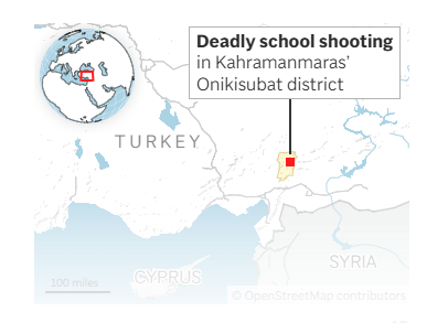 【美洲华联社4月15日讯】土耳其内政部长称,周三,一名学生在土耳其一所中学的两间教室开枪,造成9人死亡,13人受伤。这是该国2天内发生的第二起校园枪击案。