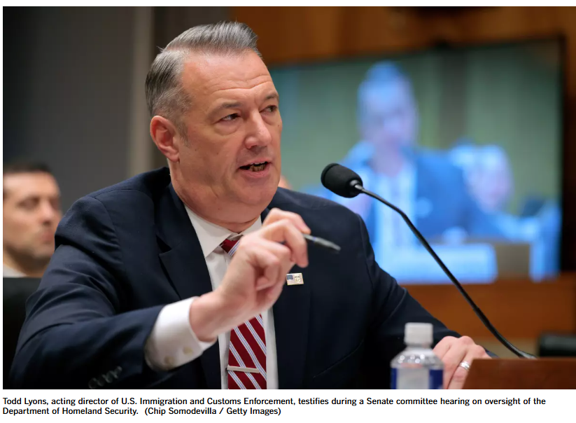 国土安全部长:ICE代理局长托德·莱昂斯将于5月底辞职