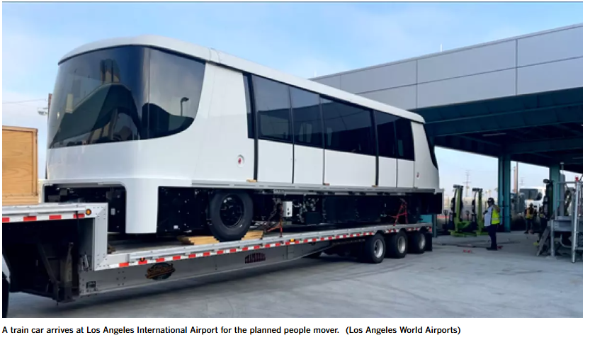 近期到访洛杉矶国际机场的旅客已经习惯了连接各个航站楼的高架铁路,但下周他们将看到一个令人兴奋的新景象——真正的列车沿着轨道运行。