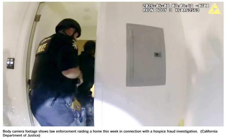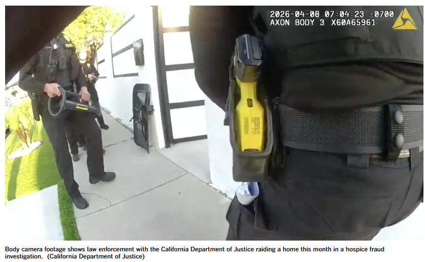 本月,他再次前往加州,参与了一次特警突袭行动,逮捕了2名涉嫌诈骗的人员。此次行动是针对多家临终关怀机构所有者的大规模调查的一部分,这些机构被指控通过虚假申报骗取纳税人5000万美元。