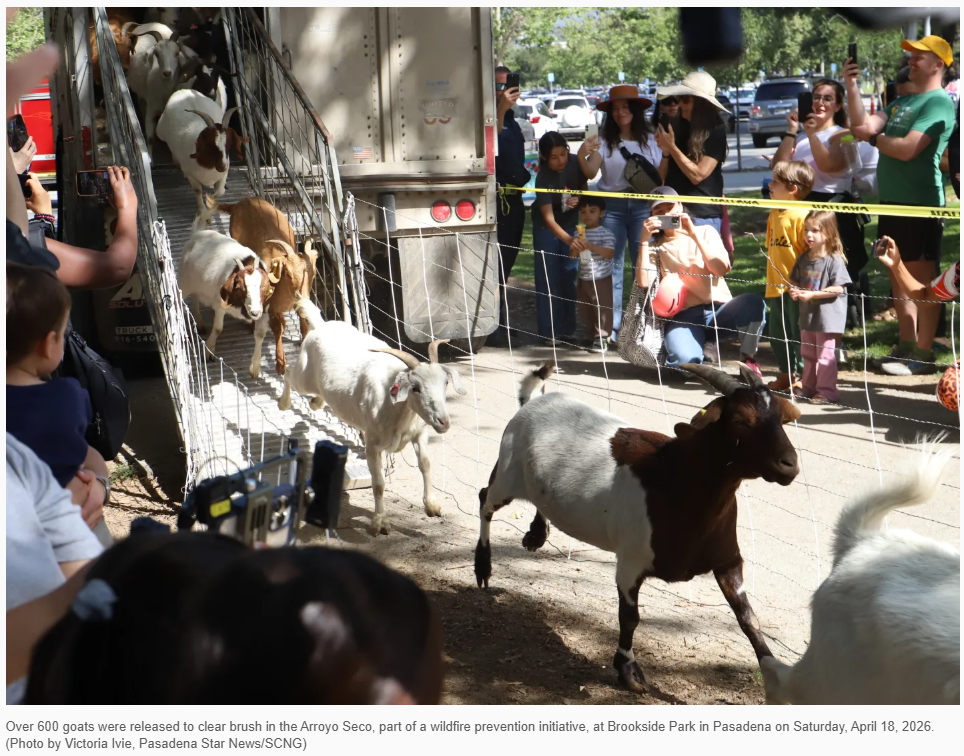 据圣盖博谷论坛报报道吗,这次山羊放生活动是布鲁克赛德(Brookside)公园地球日庆祝活动的一部分,吸引了数百名社区居民来到玫瑰碗体育场。除了放生活动外,还有适合家庭参与的山羊瑜伽和宠物动物园。