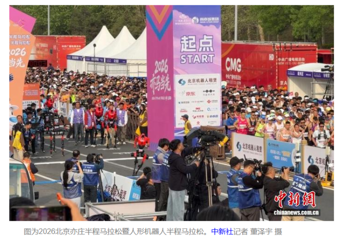 中新网北京4月19日电 (记者 陈杭 徐婧)19日7时30分,2026北京亦庄半程马拉松暨人形机器人半程马拉松开跑,300多台机器人、上百支队伍同场竞技,齐跑21.0975公里赛道。