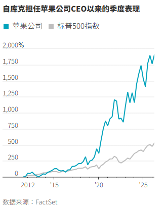 库克将因其创造的巨大价值而被铭记。在他任内,苹果公司的市值增长了近3.7万亿美元。以美元绝对值计算,他创造的价值超过了任何其他美国公司的CEO,唯一的例外是英伟达(Nvidia)的黄仁勋(Jensen Huang)。