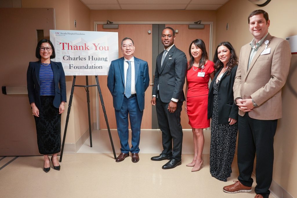 剪綵儀式出席貴賓包括,黃春華基金會創始人兼主席黃春華博士(Dr. Charles Huang)、黃春華基金會執行長 Lina Tullberg、南加州大學亞凱迪亞醫院院長兼執行長 Ikenna Mmeje,以及南加州大學亞凱迪亞醫院基金會主席 Sandra Chen Lau。事實上2022年6月,黃春華博士就已向南加州大學亞凱迪亞醫院(USC-AH)捐贈750萬美元,用於支持麻醉後照護病房(PACU)和混合手術室等多項建設,同時也是該院建院119 年以來,歷史上最大的一筆單一捐款。