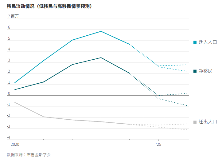 据公共政策智库布鲁金斯学会(Brookings Institution)计算,美国2025年的净移民人数为负,估计为负15万人左右,而且流出量在2026年可能会增加。布鲁金斯学会的分析师指出,实际数字可能存在偏差,因为美国官方数据尚未全面统计离开的人数。2025年的总迁入人口在260万至270万左右,低于2023年近600万的峰值。