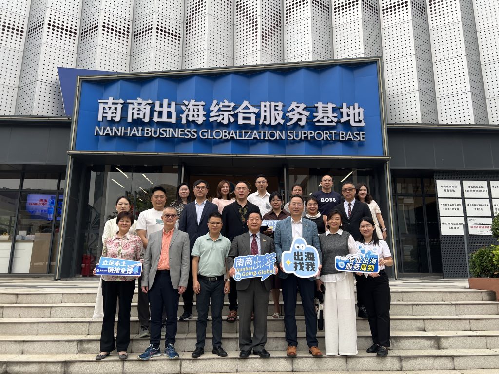 代表团一行首先参观南商出海综合服务基地,详细了解基地“政府引导、企业唱戏,市场驱动、面向全球”的出海模式,以及参观了基地的精品展区、户外家居展区、沉浸式家居区、出海服务专区等特色板块,并就基地部分产品采购开展了前期咨询。在随后的座谈中,代表团与佛山家具建材、箱包、日用化工、预制菜等领域企业代表,围绕跨境电商运营、国际物流清关、海外法务合规、品牌本土化推广等主题深入交流,精准对接供需需求。