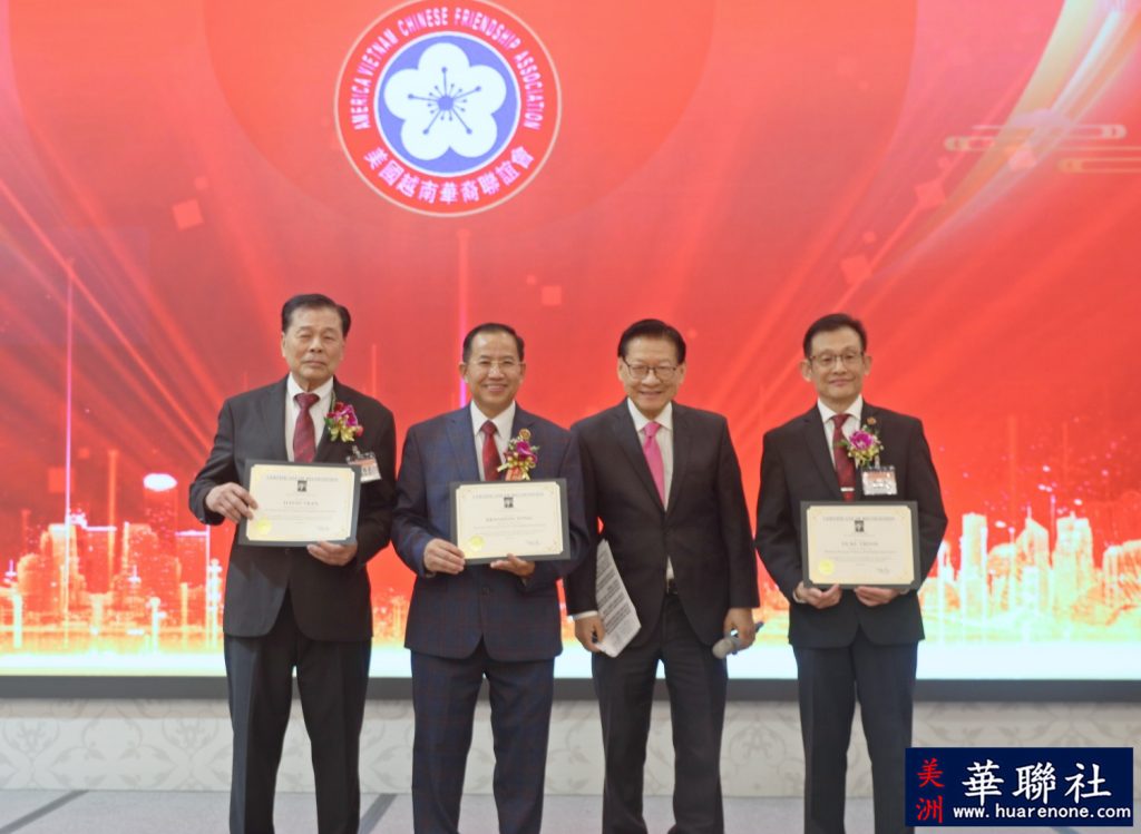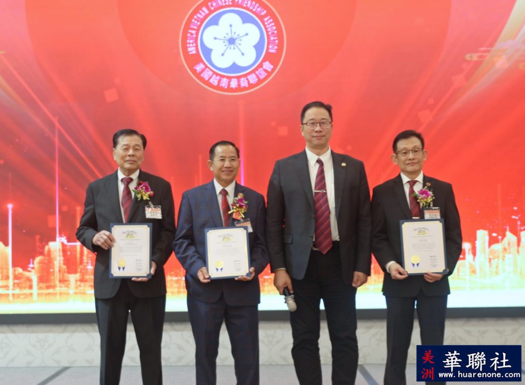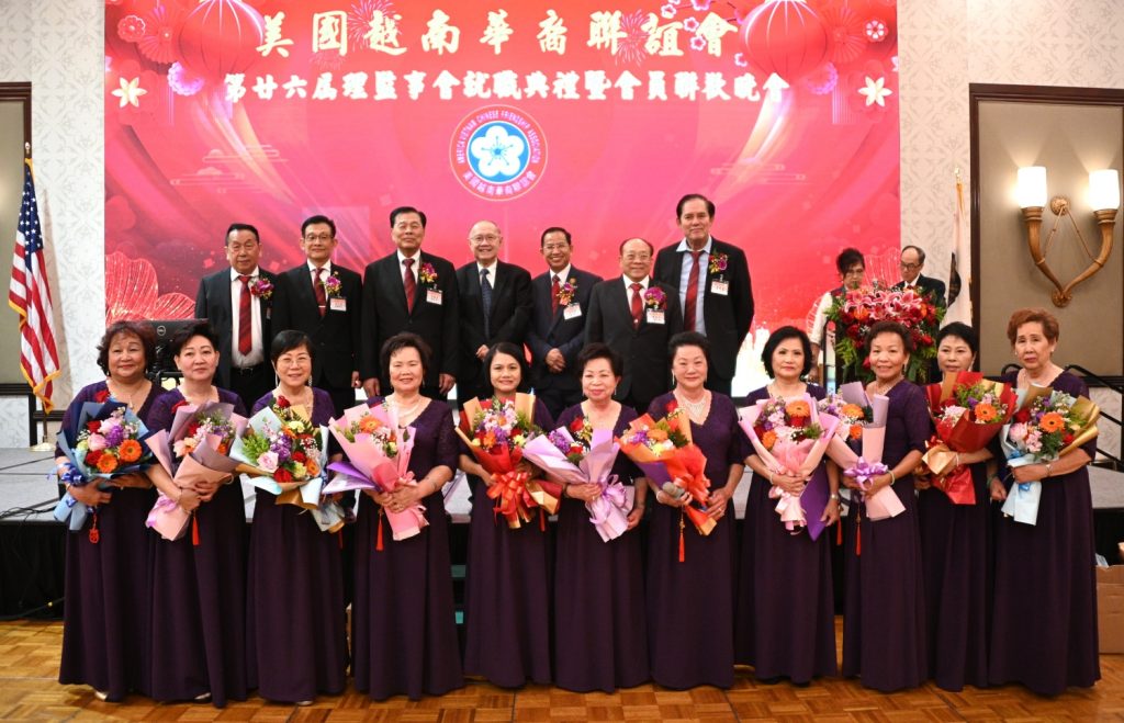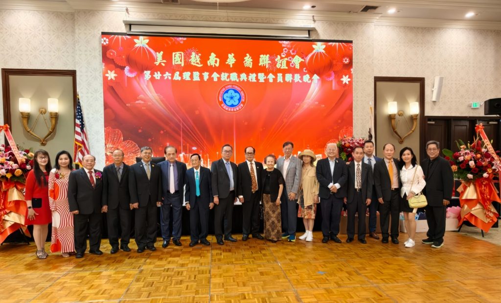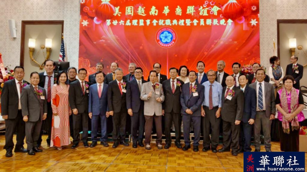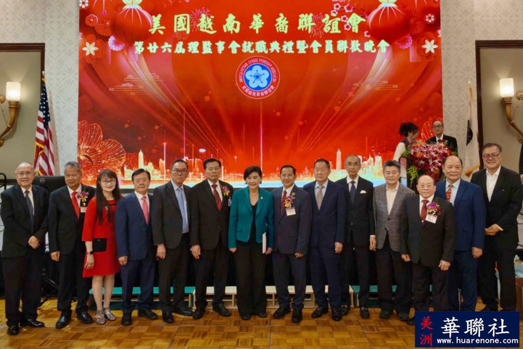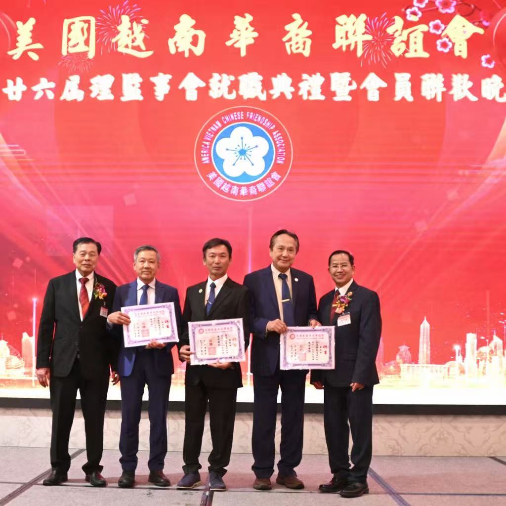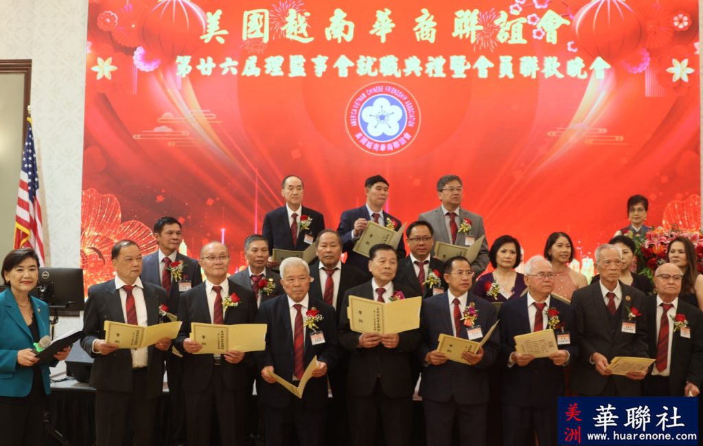 【美洲華聯社4月20日洛杉磯報道】美國越南華裔聯誼會(越華會)於4月18日晚在聖蓋博市半島酒家隆重舉辦第二十六屆理監事就職典禮暨會員聯歡晚會,唐國強接棒鄭偉德擔任新一屆主席,陳銘正為新一屆監事長。