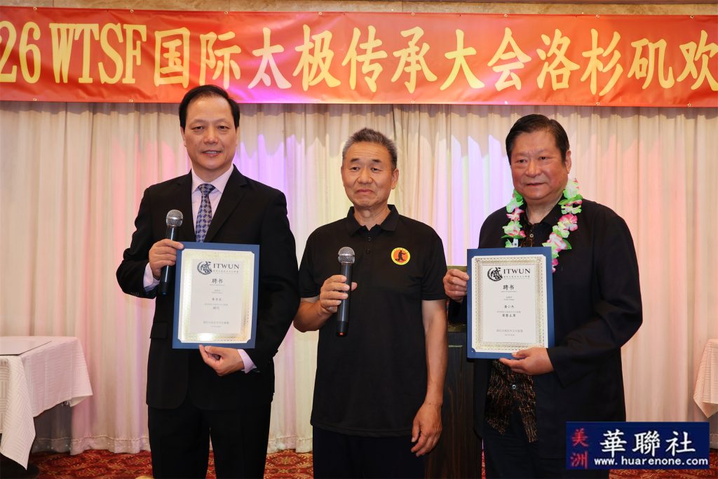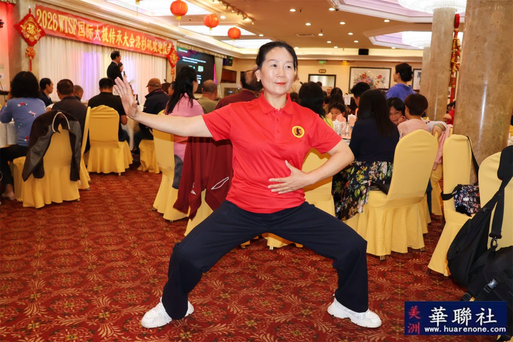 【美洲华联社洛杉矶报道】2026年4月22日晚,由世界太极科学联合会主办,OAC青少年公益组织联合主办,沙国政武术文化美国研究会、北美武苑及SANTEFIT共同承办的“国际太极传承大会”洛杉矶欢迎活动在蒙特利公园市隆重举行。来自南加州地区的社团代表、民选官员、高校学者、科研人员及武术文化爱好者约150位嘉宾齐聚一堂,共襄盛举。