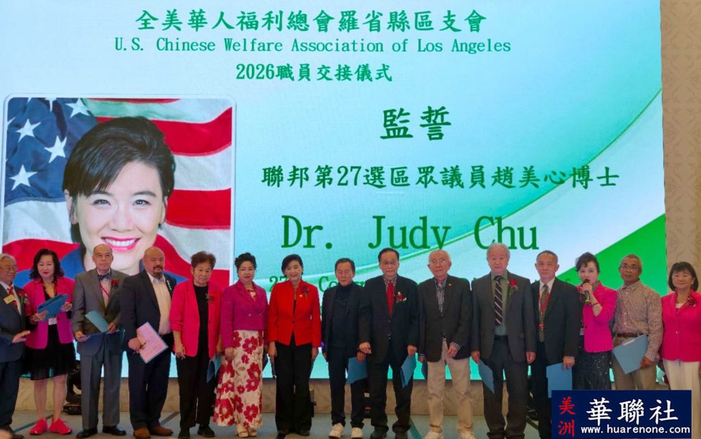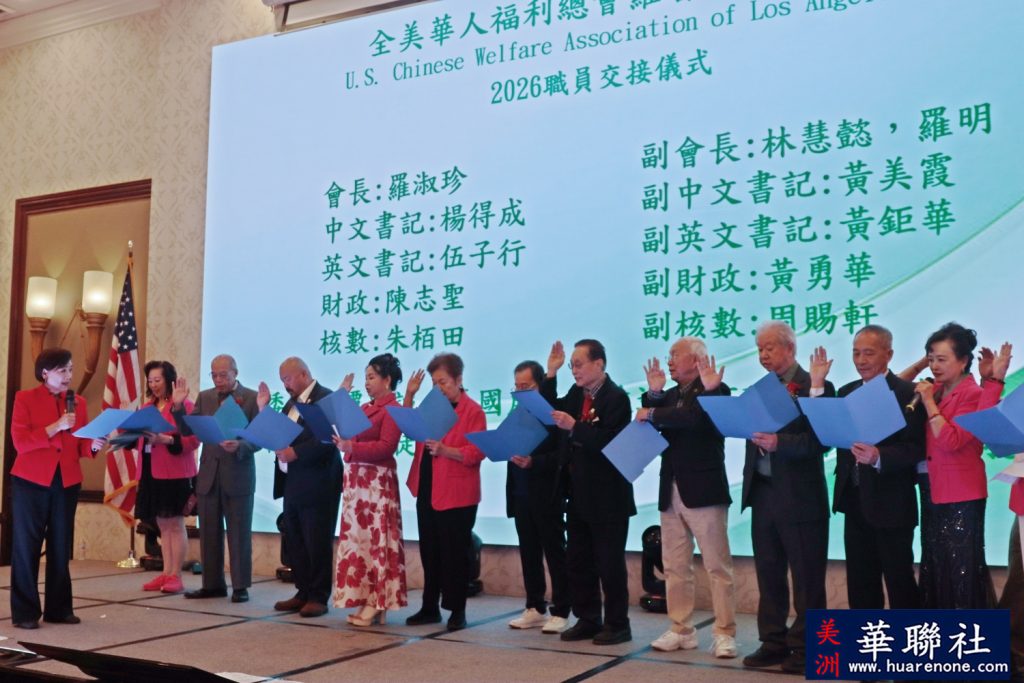 【美洲華聯社4月27日洛杉磯報道】 全美福利會洛杉磯分會(U.S. Chinese Welfare Association, Los Angeles Chapter)於2026年4月25日晚間,在聖蓋博希爾頓酒店(San Gabriel Hilton)舉行了莊嚴隆重的職員就職暨交接典禮。在國會議員趙美心、加州眾議員方樹強、聖蓋博谷水區理事伍國慶等見證下,由張麗卿正式交棒予新任會長羅淑珍,象徵該會將繼續秉持「服務僑社、關懷弱勢」的精神,邁向新的里程碑。