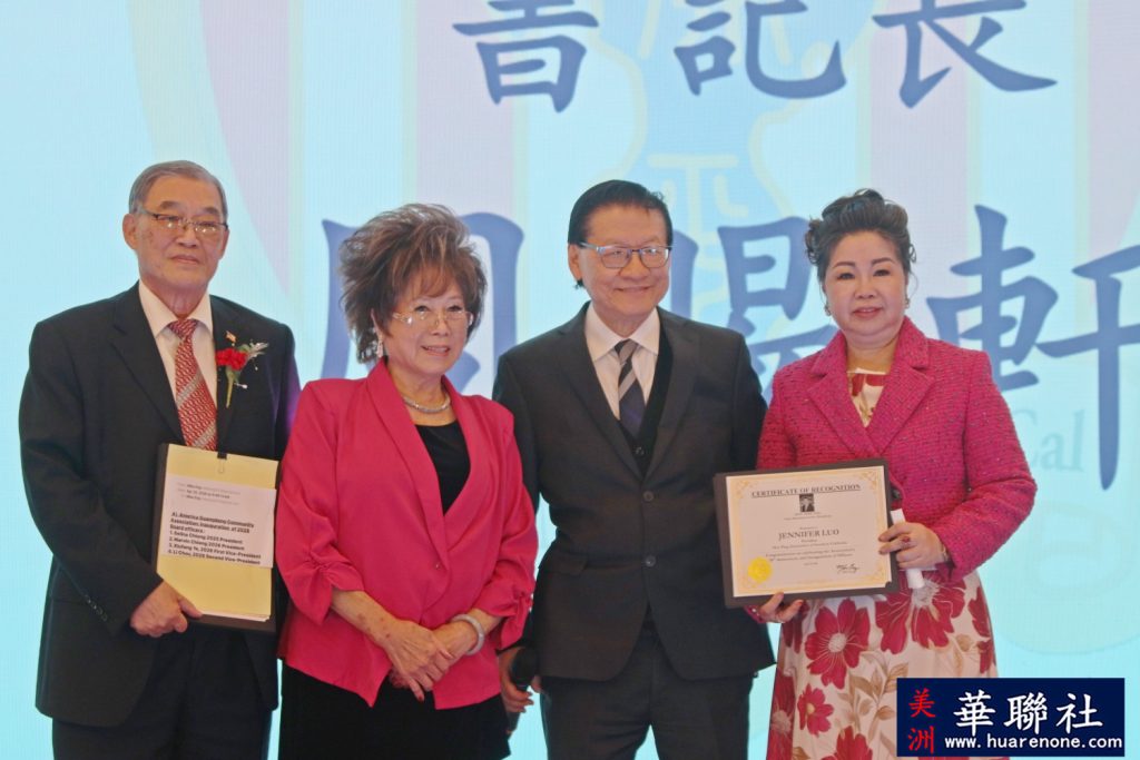 典禮當晚星光熠熠,美國聯邦眾議員趙美心博士(Dr. Judy Chu)親臨現場,親自帶領新屆職員進行莊嚴的宣誓儀式。隨後,在加州眾議員方樹強(Mike Fong)的見證與監交下,卸任會長張麗卿將象徵責任與傳承的印信正式交予新任會長羅淑珍。交印時刻,新任副會長林慧懿亦全程陪同在側,與羅會長並肩接下重任,充分展現出新屆團隊團結一心、攜手服務僑社的嶄新氣象,場面溫馨且隆重。