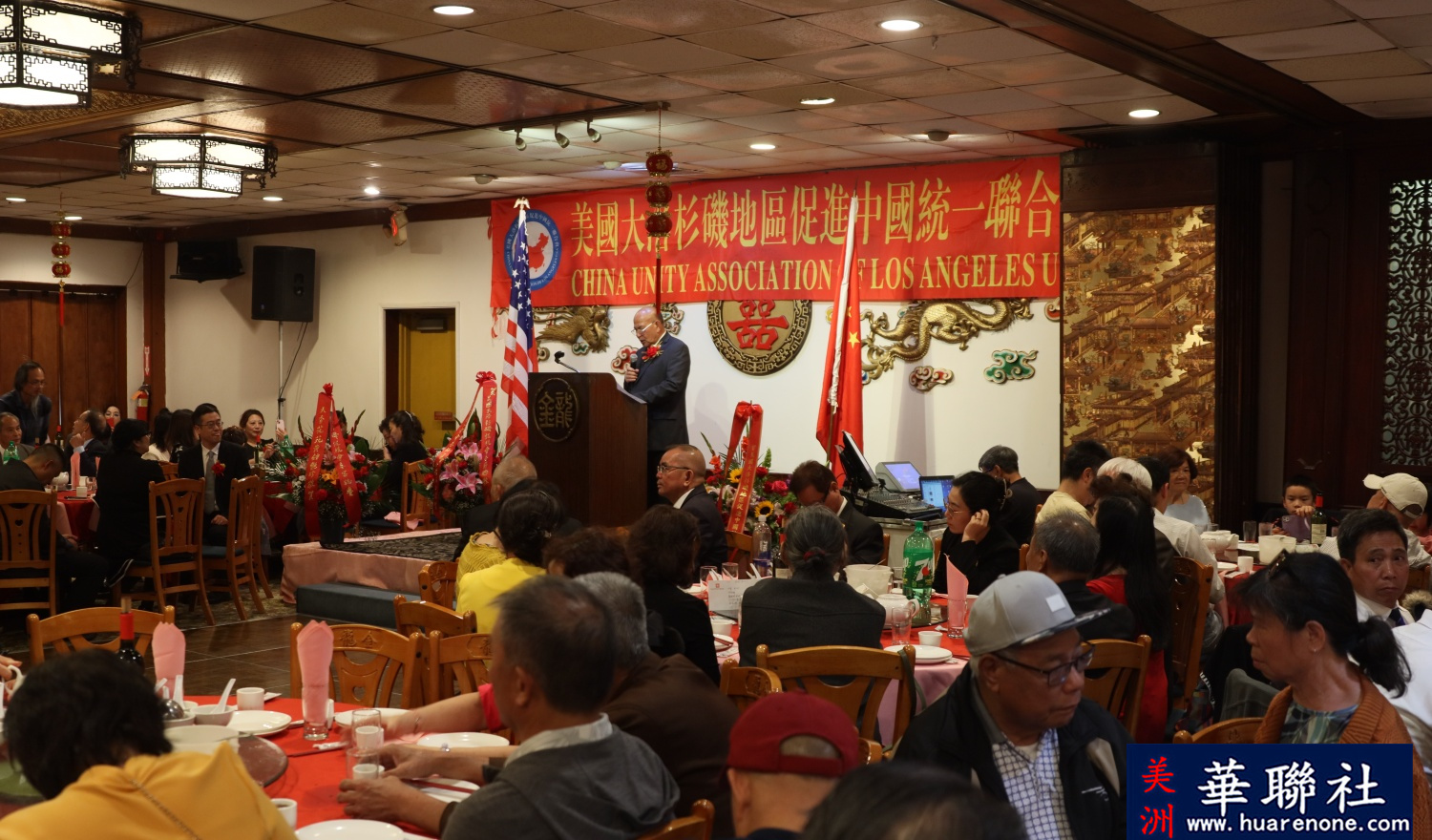 【美洲华联社4月27日洛杉矶报道】2026年4月26日晚,美国大洛杉矶地区促进中国统一联合会在洛杉矶金龙酒家隆重举行春宴晚宴,来宾、朋友等近300人出席,共庆马年新春。